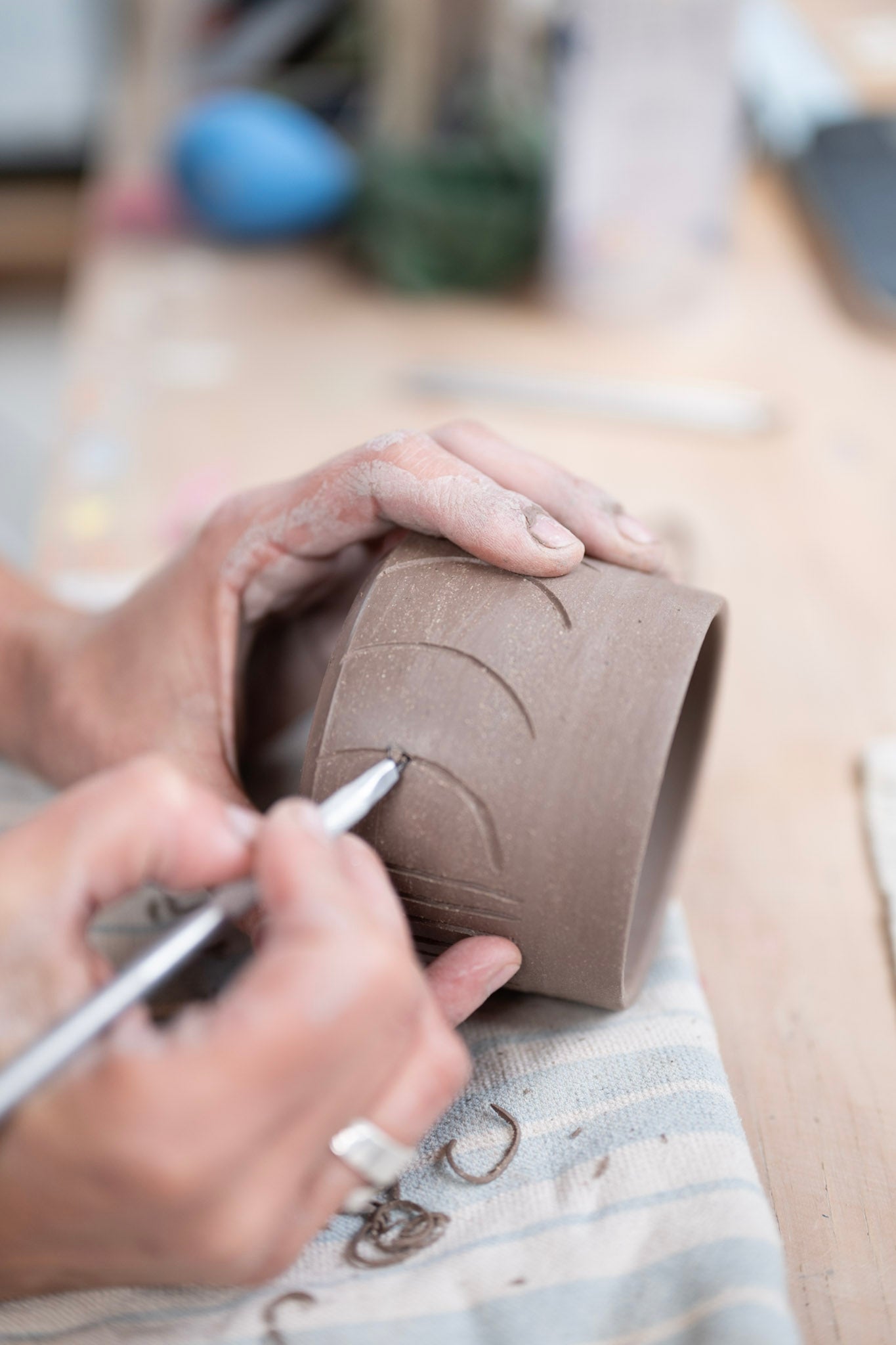 Pottery became my thing as I grew my family and started searching for a more balanced life. I started ceramics in 2014, with three little kiddos and a tiny pocket of time. I enjoyed having a space to turn off my rambling mind and do something for myself. It could barely unplug, but it was a chance to use my hands. Fast forward a few more years, when my brain had more space to focus on the task at hand. I started figuring out the clay and making with intention. It wasn't until 2019 that I delved deeper into my creative brain, allowing more space and time to create. This is when I fell in love with clay; the feel and touch and malleability. I love creating vessels for my food.